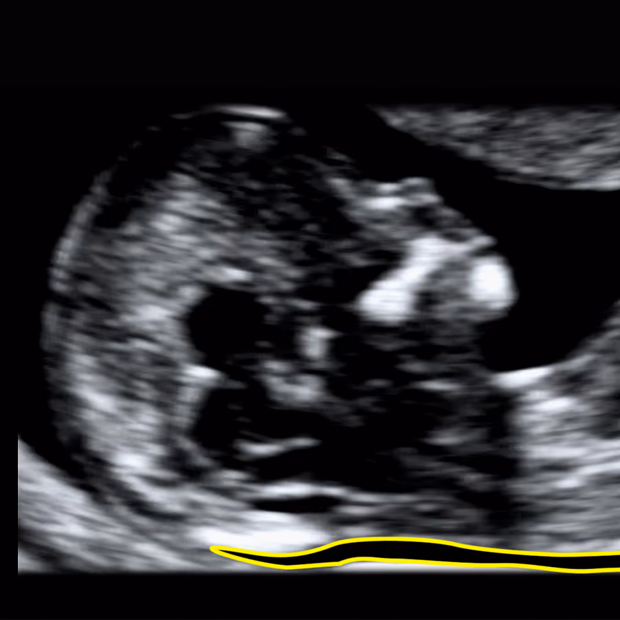 Nuchal translucency (NT) refers to the subcutaneous fluid-filled space between the fetal skin and the soft tissues overlying the cervical spine, visible on ultrasound in the first trimester. A small NT is a normal developmental feature, but an increased NT measurement may indicate chromosomal abnormalities, genetic syndromes, cardiac defects, or other structural anomalies. Assessment of NT provides an important early marker of overall fetal wellbeing.